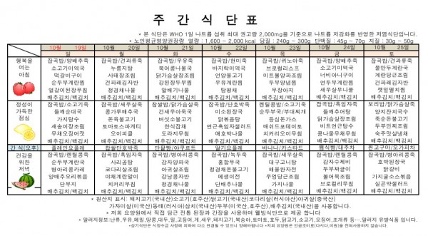10월 4주 식단표