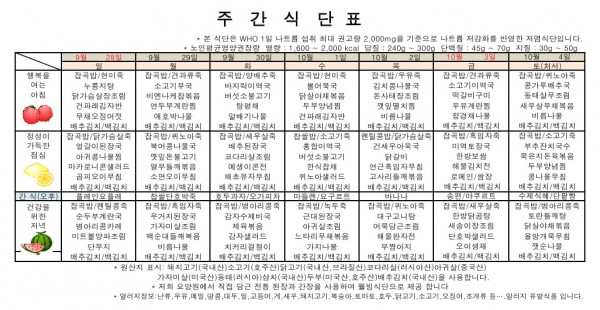 10월 1주 식단표