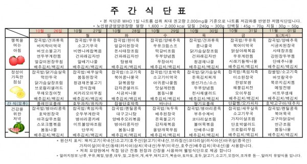 10월 5주 식단표