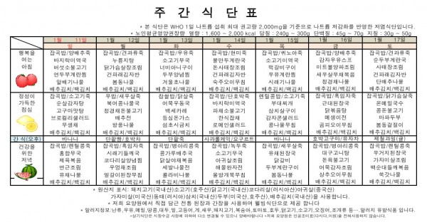 1월 2주 식단표
