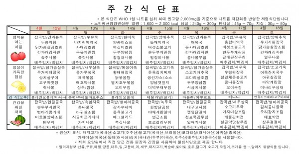 맑고 포근한 봄 날씨에 어르신의 건강을 위하여 우렁된장국,시금치프리타타,콩나물잡채,아귀살탕수,마약계란장,버섯소불고기,한방닭곰탕,해물김치전,야채계란말이,고구마맛탕,우거지해장국,수제토마토주스,제철과일(딸기),고구마라떼 등 어르신 면역력 향상을 위한 절기 음식으로 준비하였습니다.신선한 제철 식재료로 어르신 건강을 위하여 정성을 다하여 조리 하겠습니다.