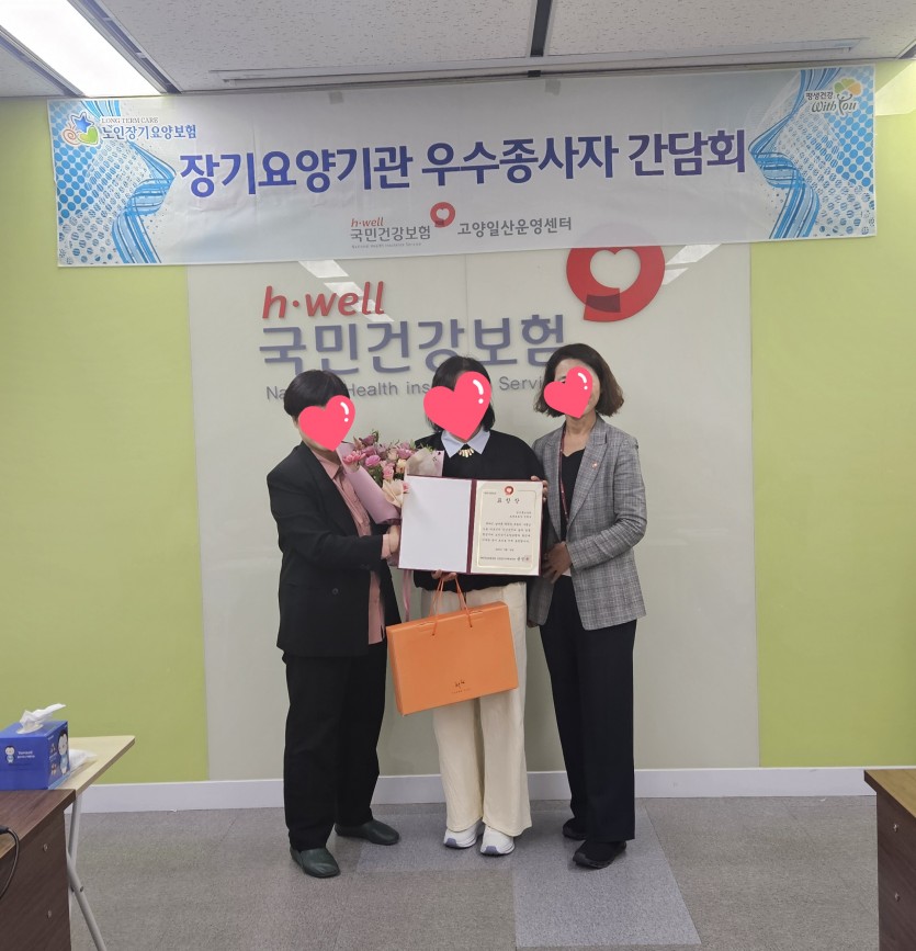 2025년도 고양시 관내 우수돌봄 종사자에 일산휴요양원에 재직중인 장*숙 요양보호사가 선정되었습니다.