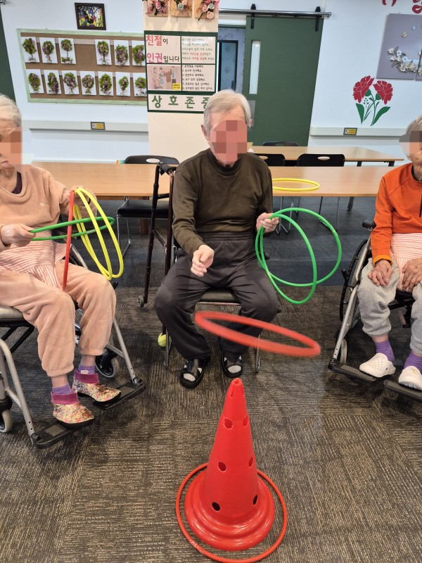 고리던지기 페이지 정보 작성자관리자 댓글 0건 조회Hit 52회 작성일Date 26-04-04 08:19 본문 여러 어르신들이 동그랗게 모여 고리를 던지며 집중력 향상과 상지 근력 강화에 도움을 드립니다 목록 이전글의자블럭 26.04.13 다음글전통놀이(장갑) 26.04.04 댓글목록 댓글목록 등록된 댓글이 없습니다.